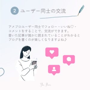 アメブロはユーザー同士で「フォロー」「いいね」「コメント」をすることで交流ができます。